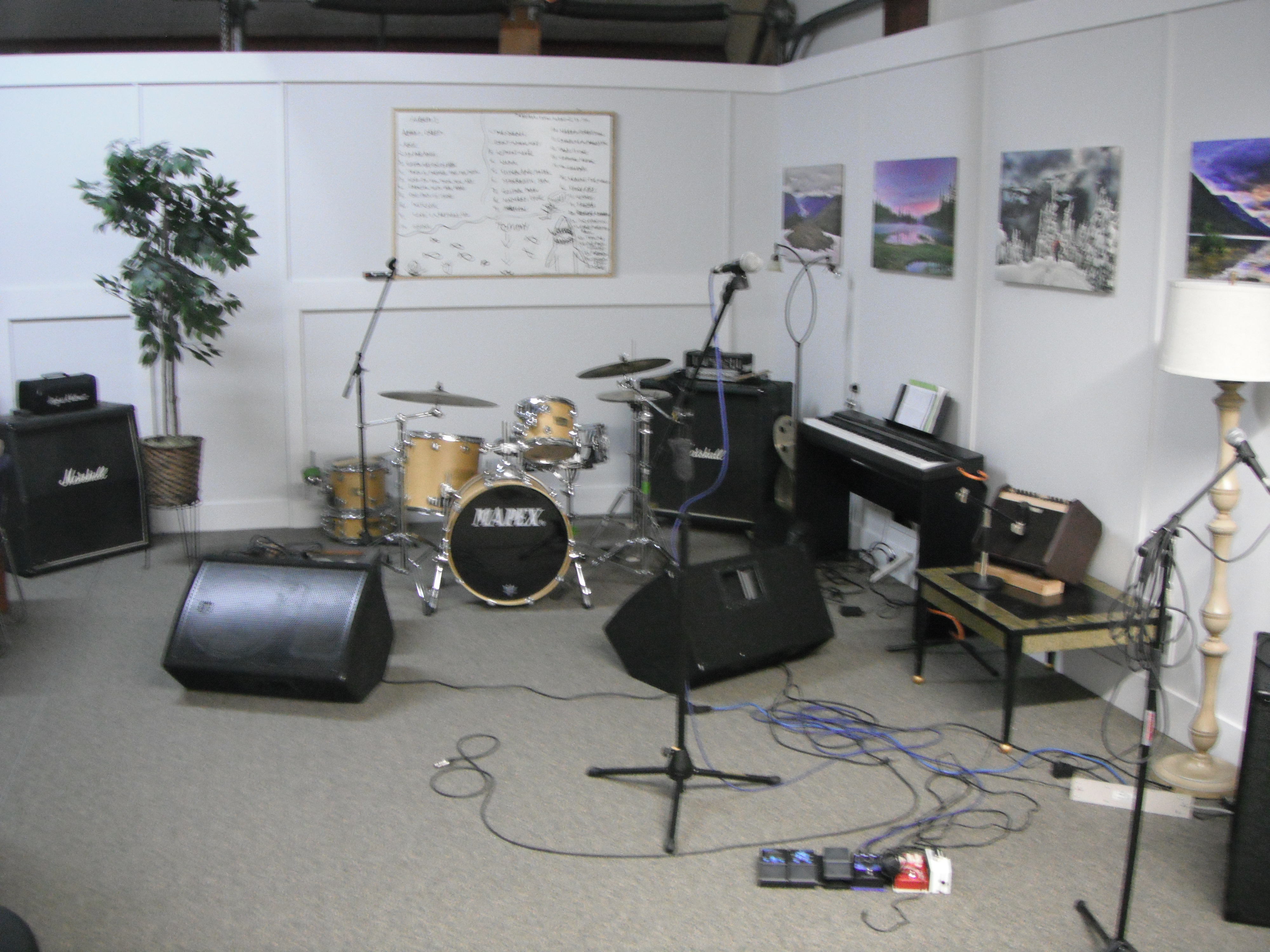 Main live room… massive kick sound!Small lounge off of control room… listen to records, watch Netflix, practice sweeping arpeggios…Rehearsal area can also be used to accommodate a larger ensemble.Dedicated vocal booth with a “dry” side and a “lively” side. Its good to have options.Another view of the live room.1970’s era Hammond L100 (which will soon be routed through a leslie-style speaker). All-tube and right churchy.Les Paul Special + Egnater = very little work for engineer in the mix.